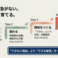 人から人材へ、やがて人財へを念頭に一緒に成長して